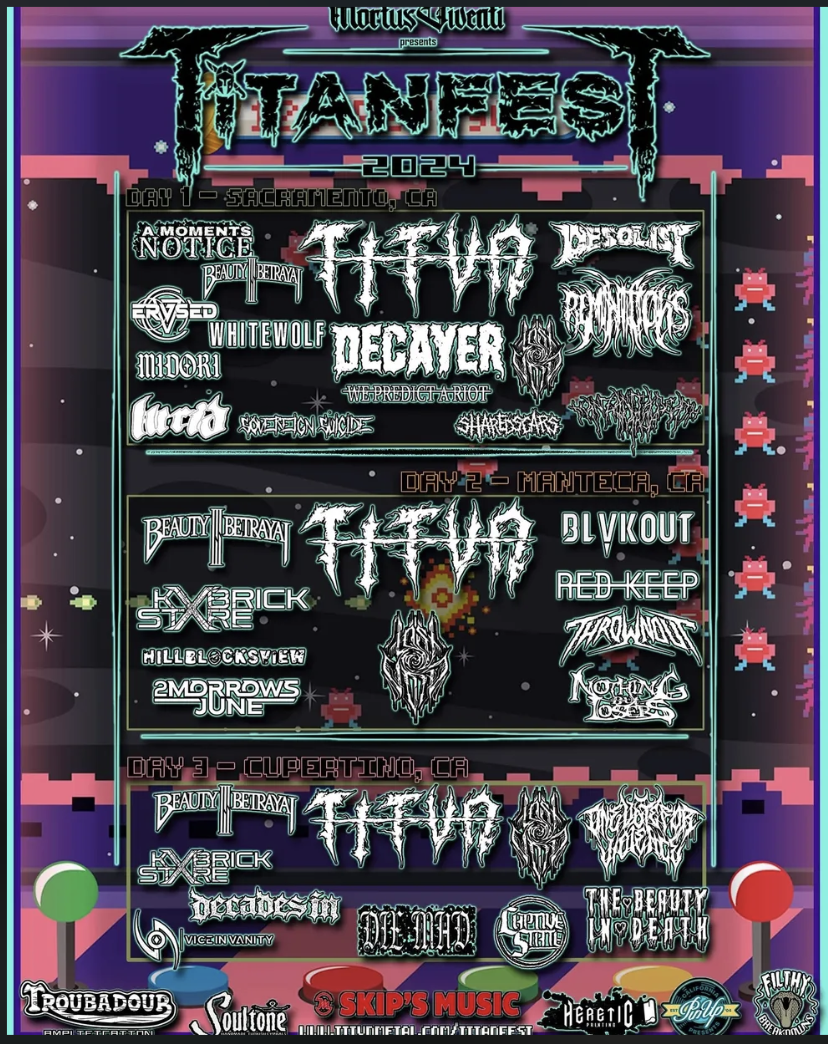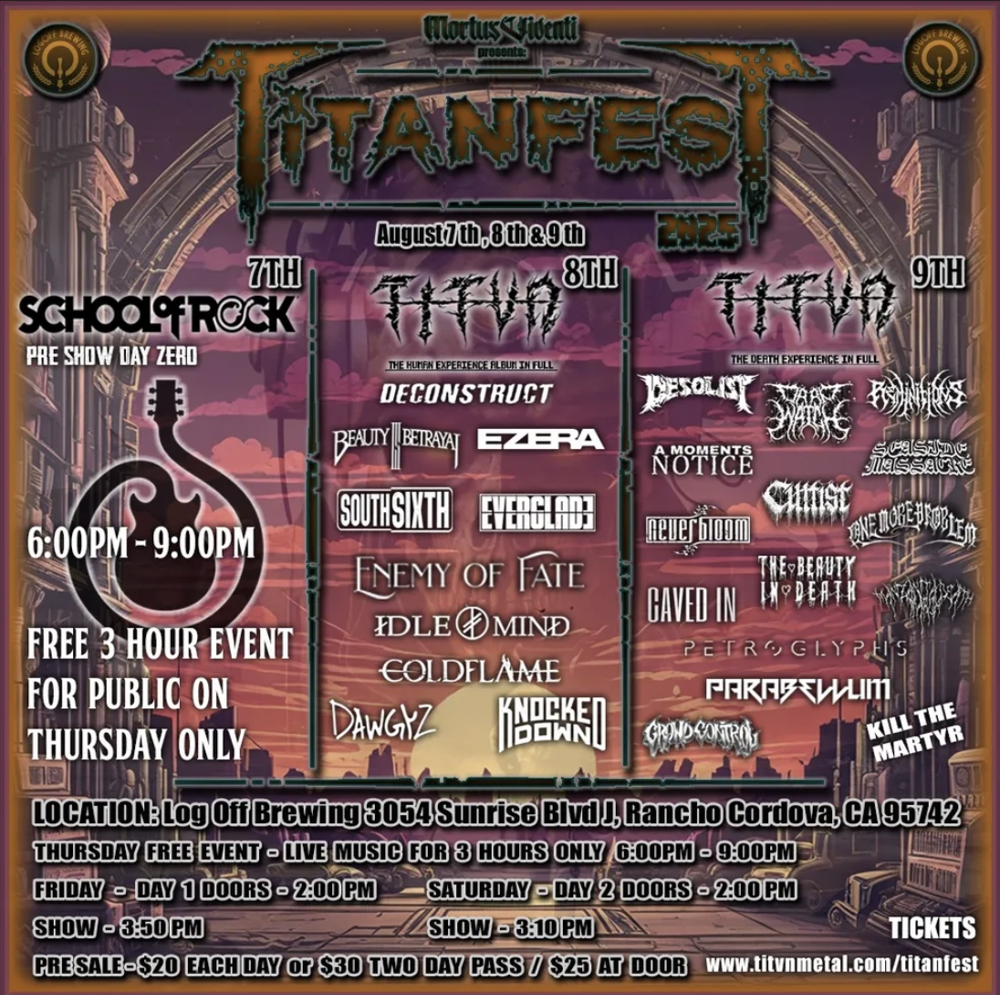 TITVN est. 6.03.21 is a metalcore band that hails from Sacramento, CA and brings not only Metalcore to the table but deathcore influence and tasty hardcore riffs that will keep you head banging or start two stepping. You want blast beats? They got it, how about breakdowns? Have you heard their song “The Death Experience?!” Go jam that! Catchy choruses? Better be ready to be HOOKED on "LOVE" or "The Human Experience", maybe even on "Absence of Warmth". TITVN is a must have band on any metal/rock show or festival that strives to have the best of the best on their line up!